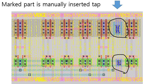 One step needs to be done before running the LVS. As the generated DFF cell does not contain taps inside (as typically the taps are placed as separate instances), we need to manually insert manual taps before running LVS.